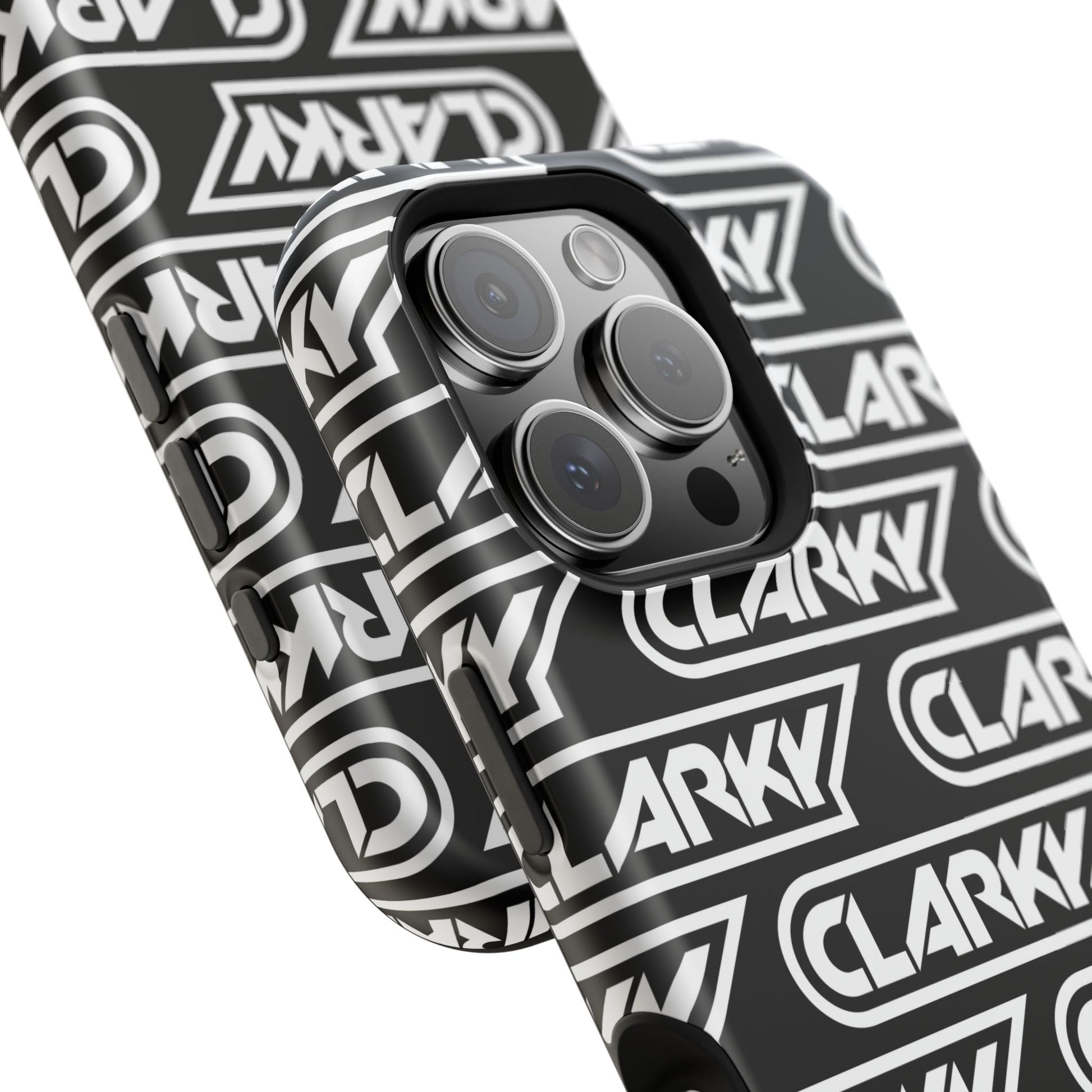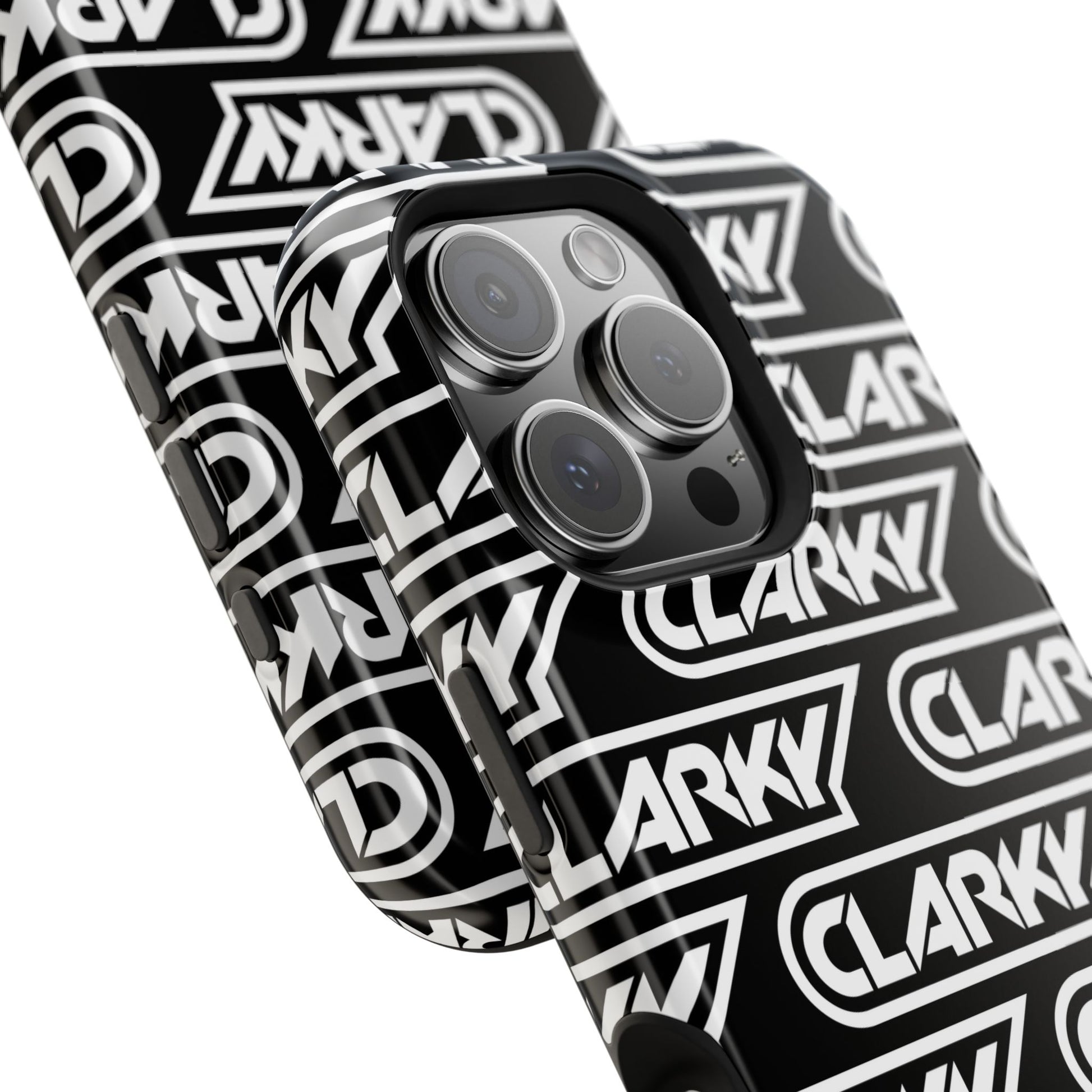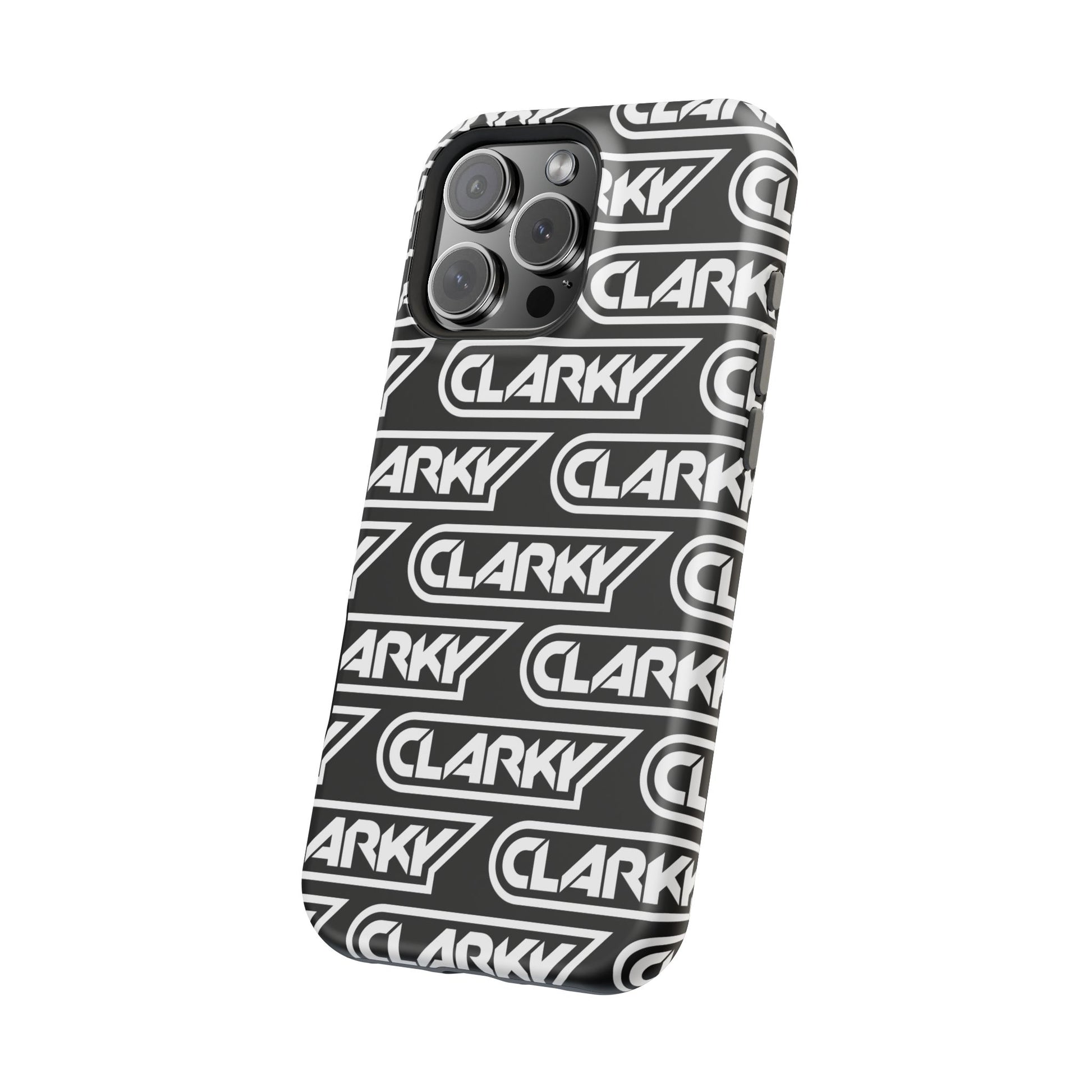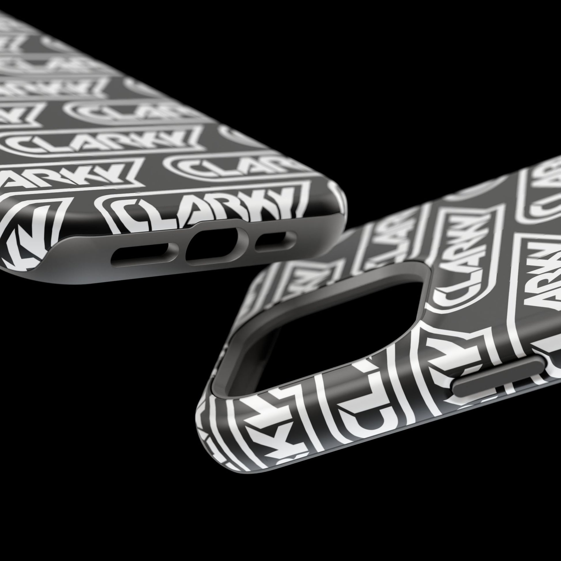 Clarky’s iPhone case features a repeat logo pattern that turns your phone into a clean piece of artist merch.