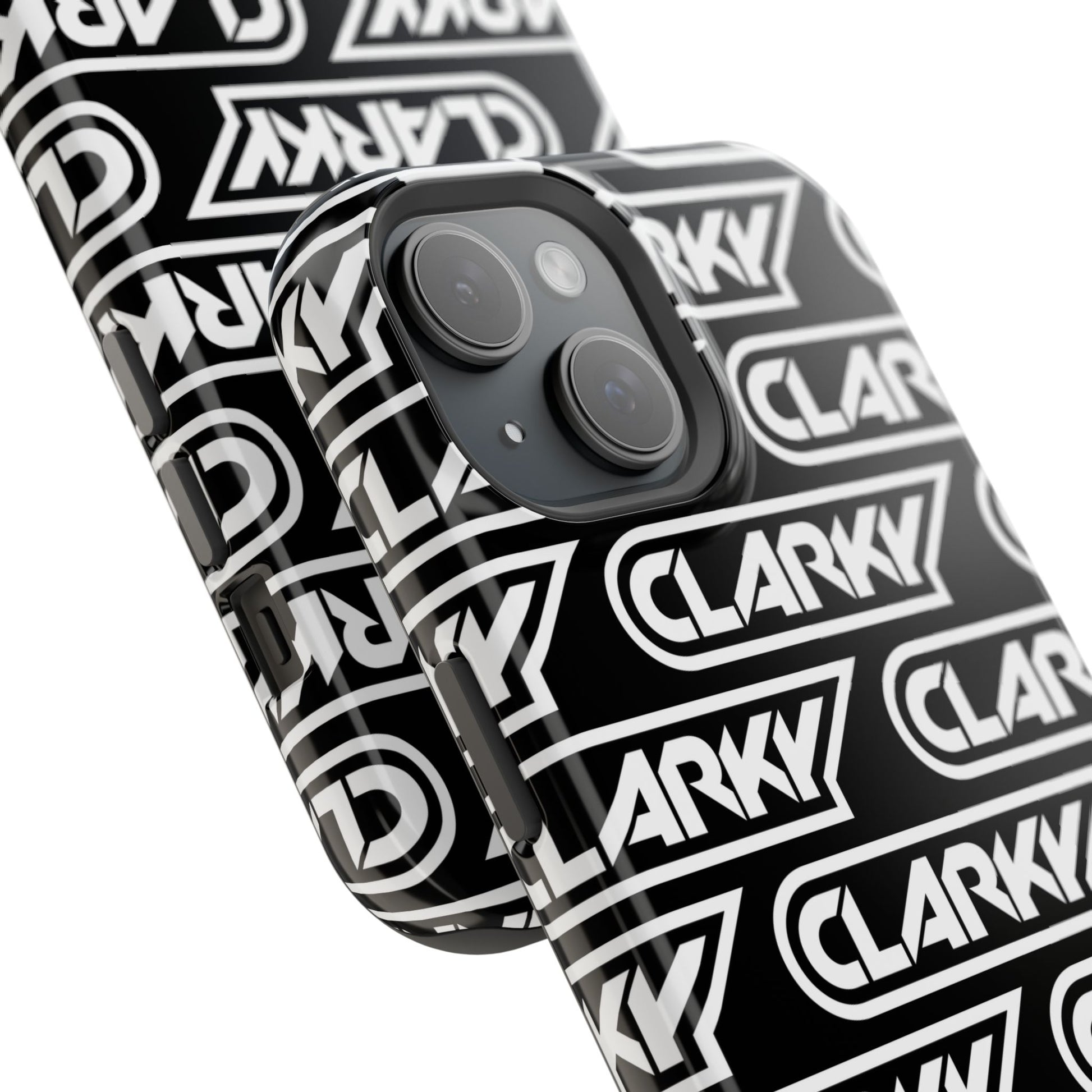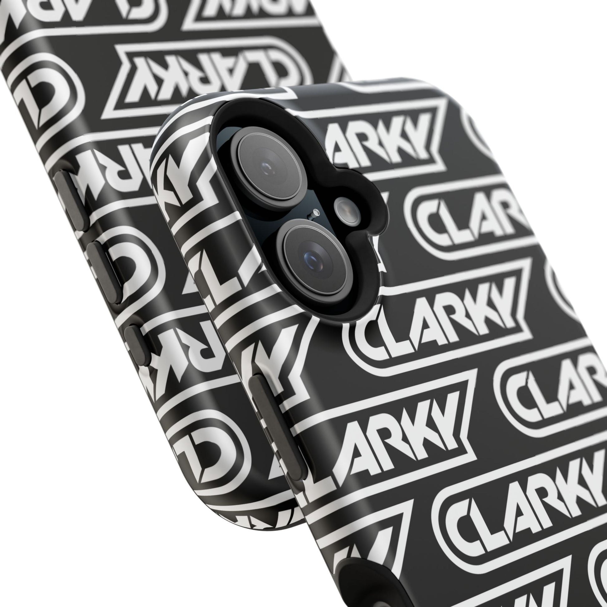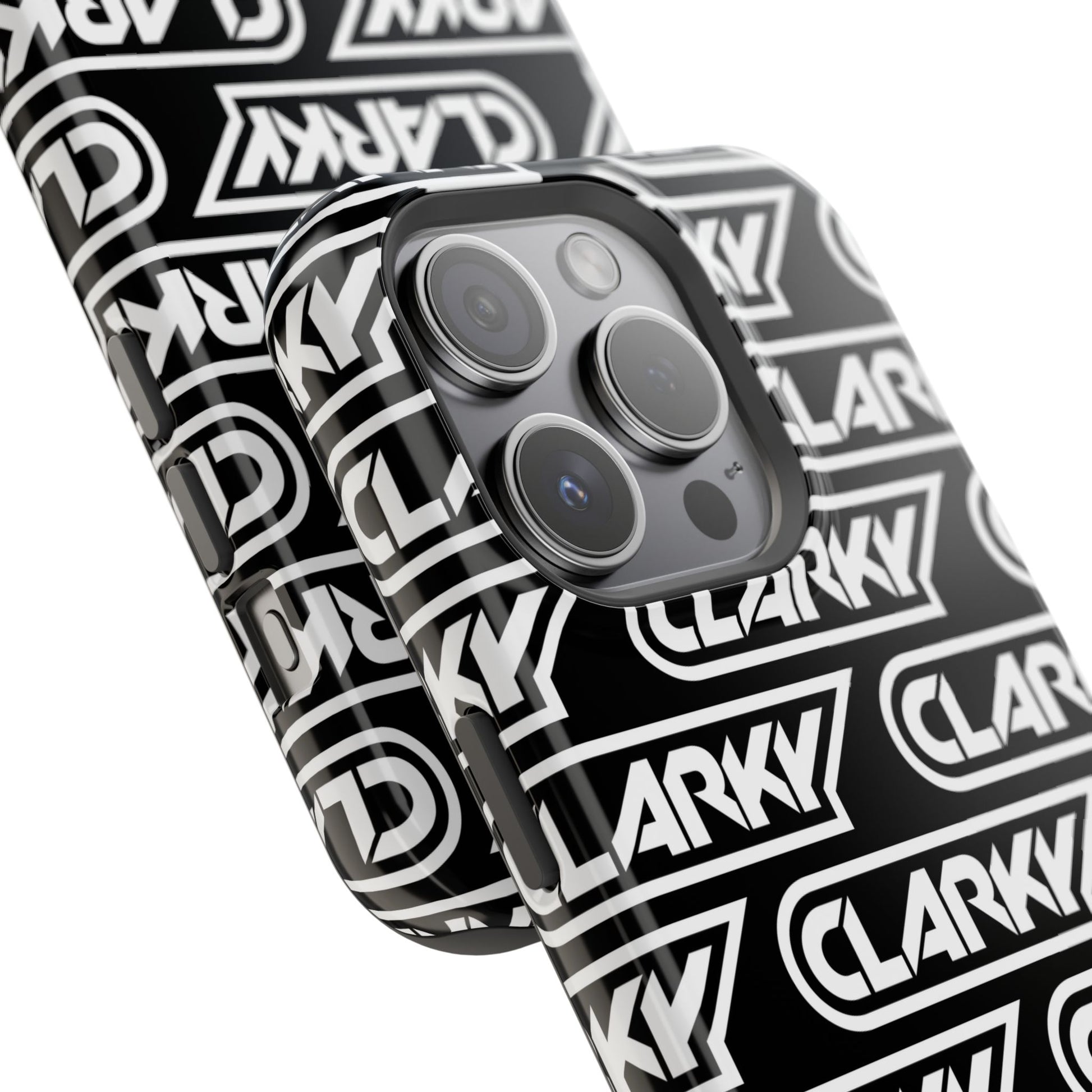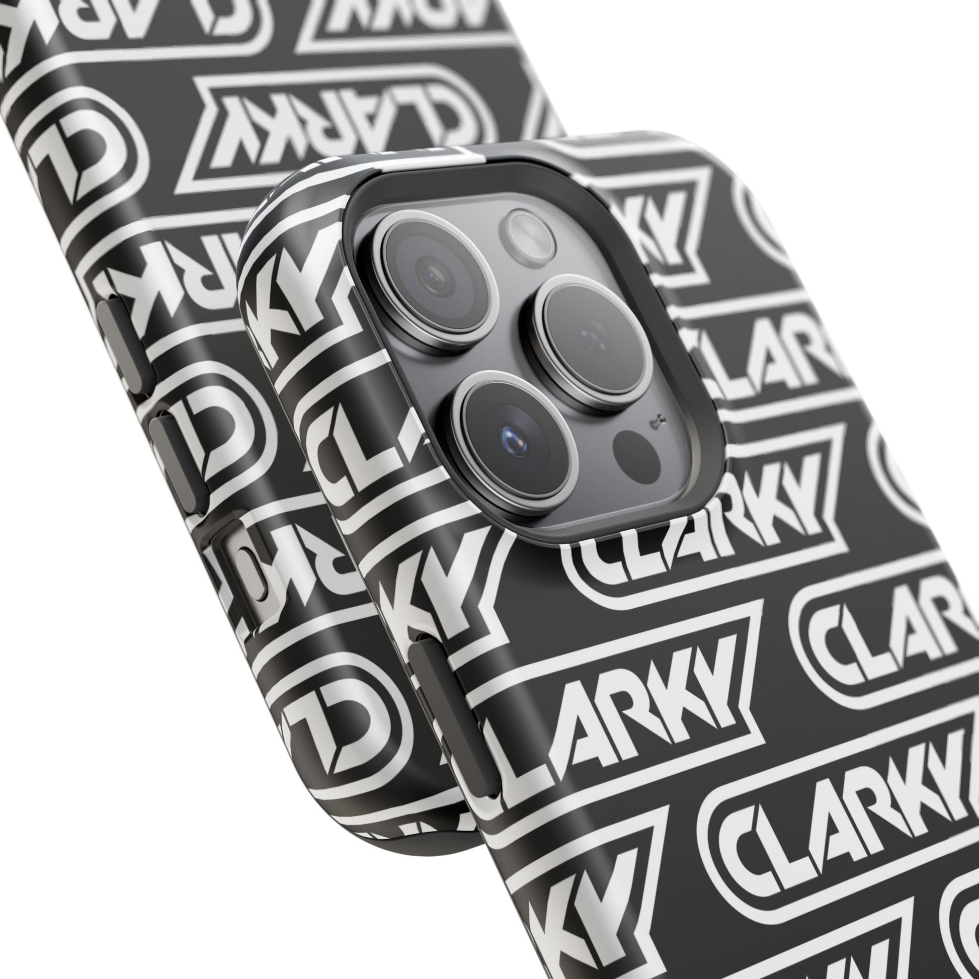 Clarky’s iPhone case features a repeat logo pattern that turns your phone into a clean piece of artist merch.